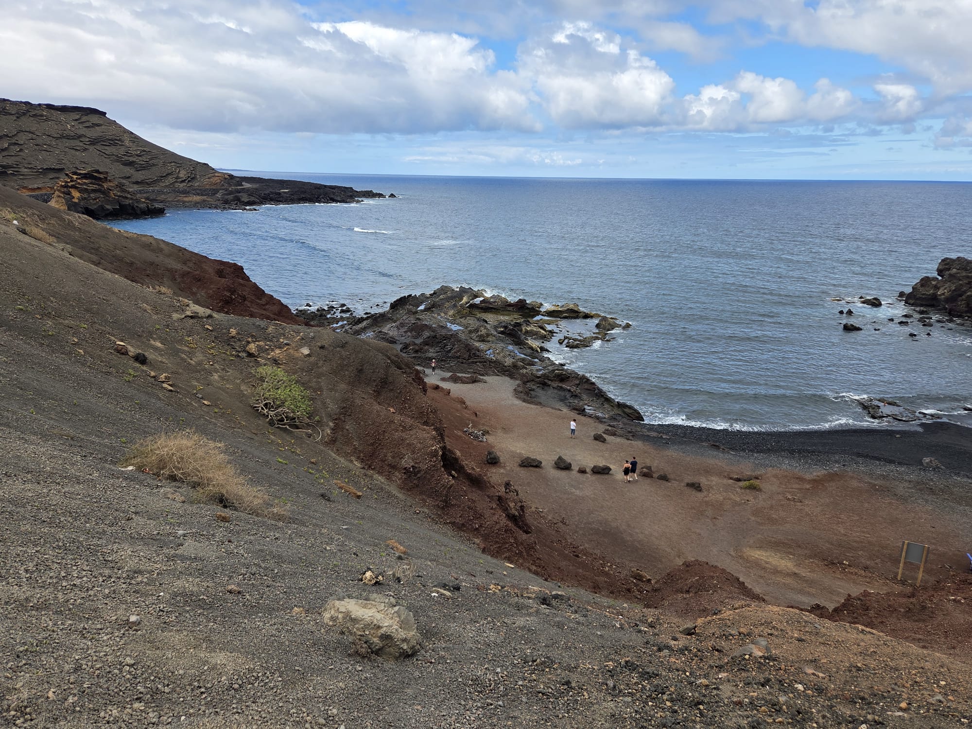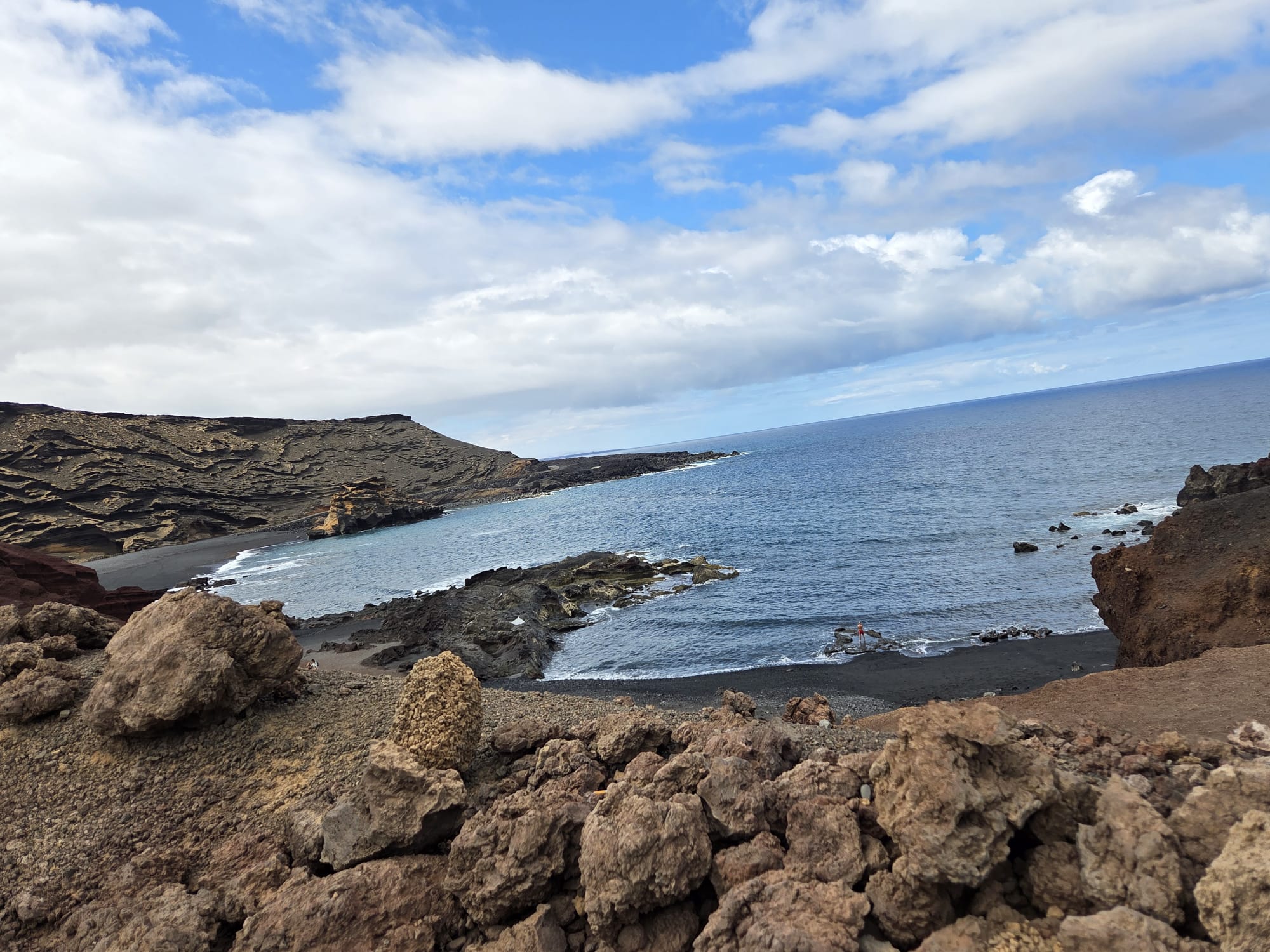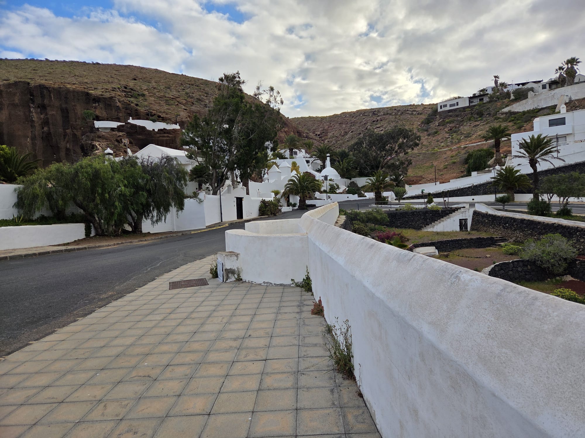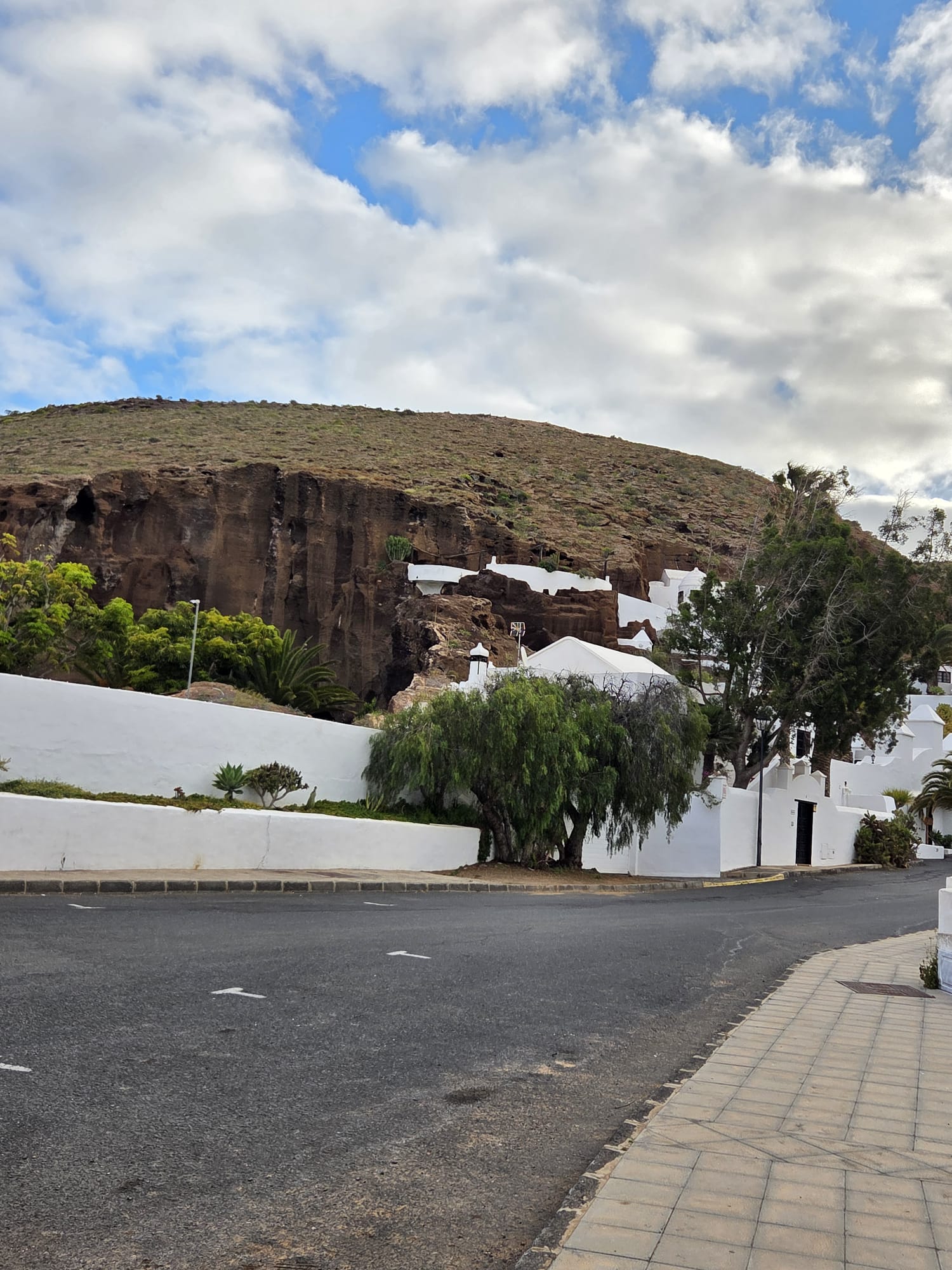 בתי העיירות באי צבועים בלבן על רקע אדמת הבזלת השחורה באי