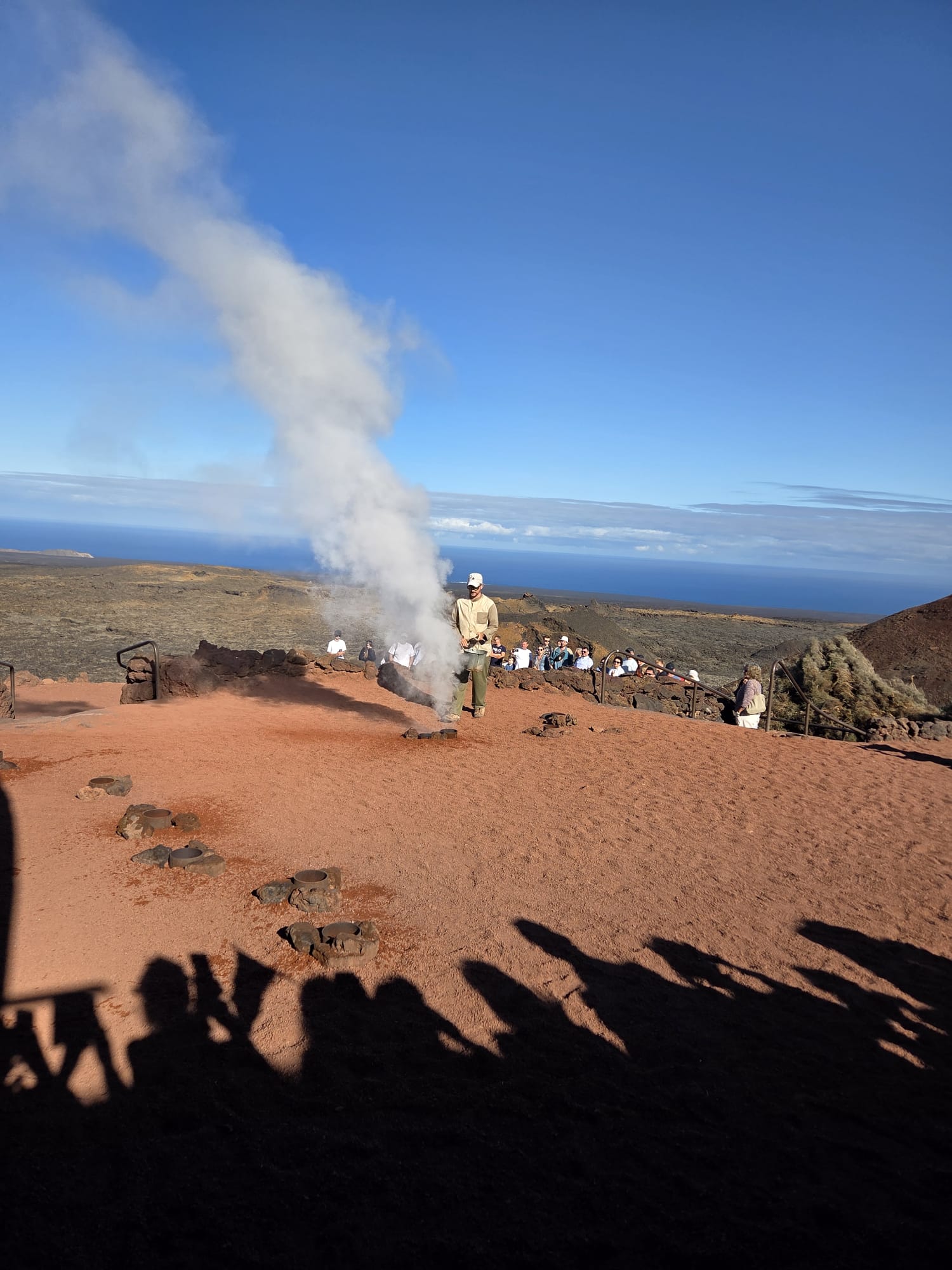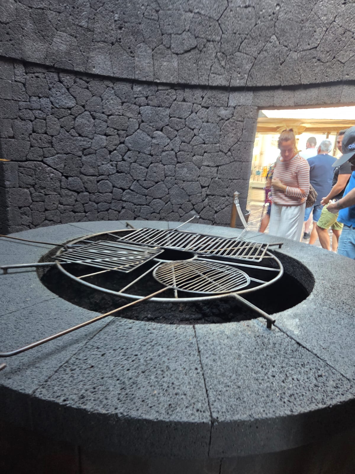 התנור הטבעי עליו נצלים הבשרים לקראת ארוחת הצהרים הכל באש וולקאנית הפעילה עדין