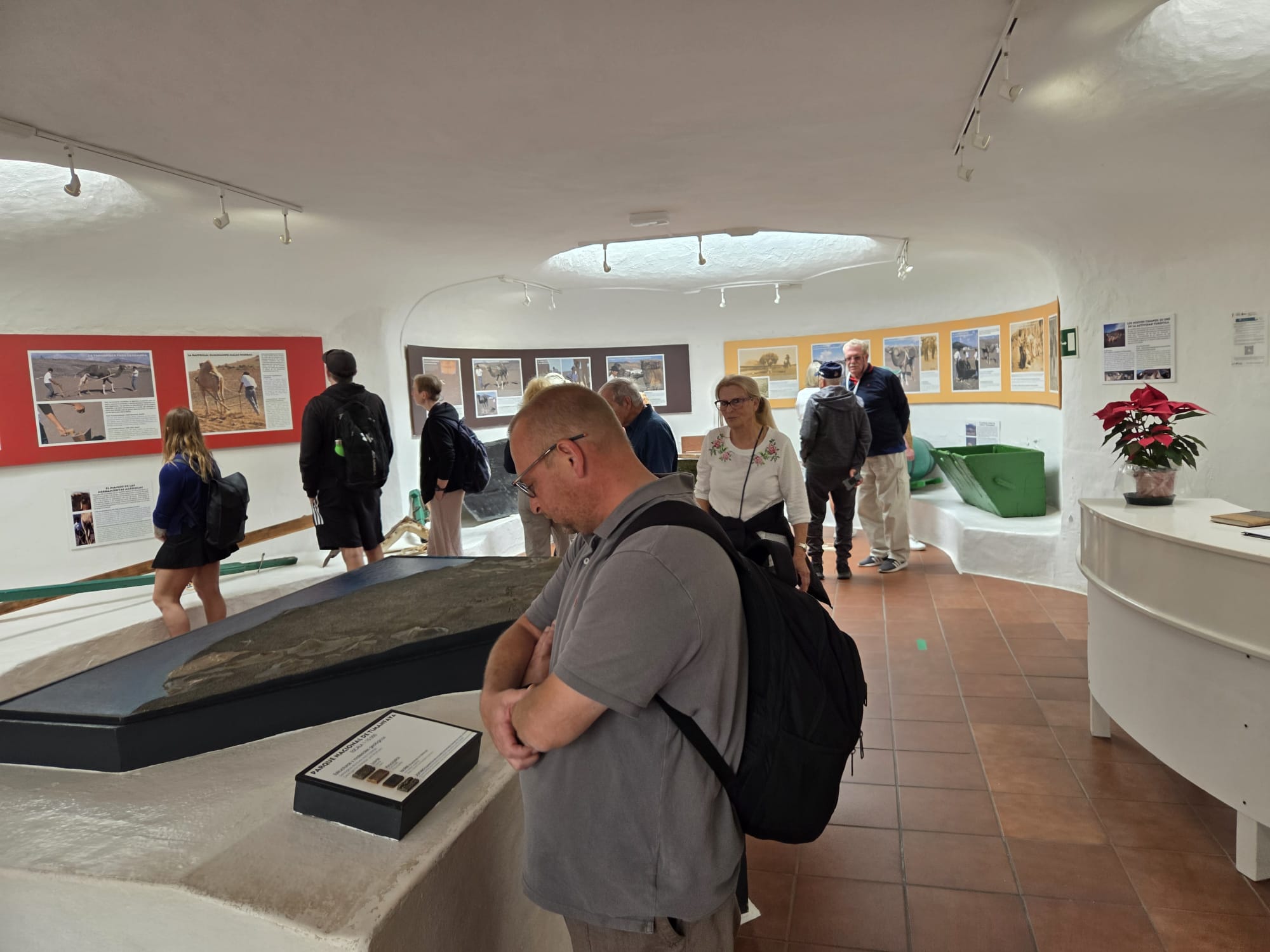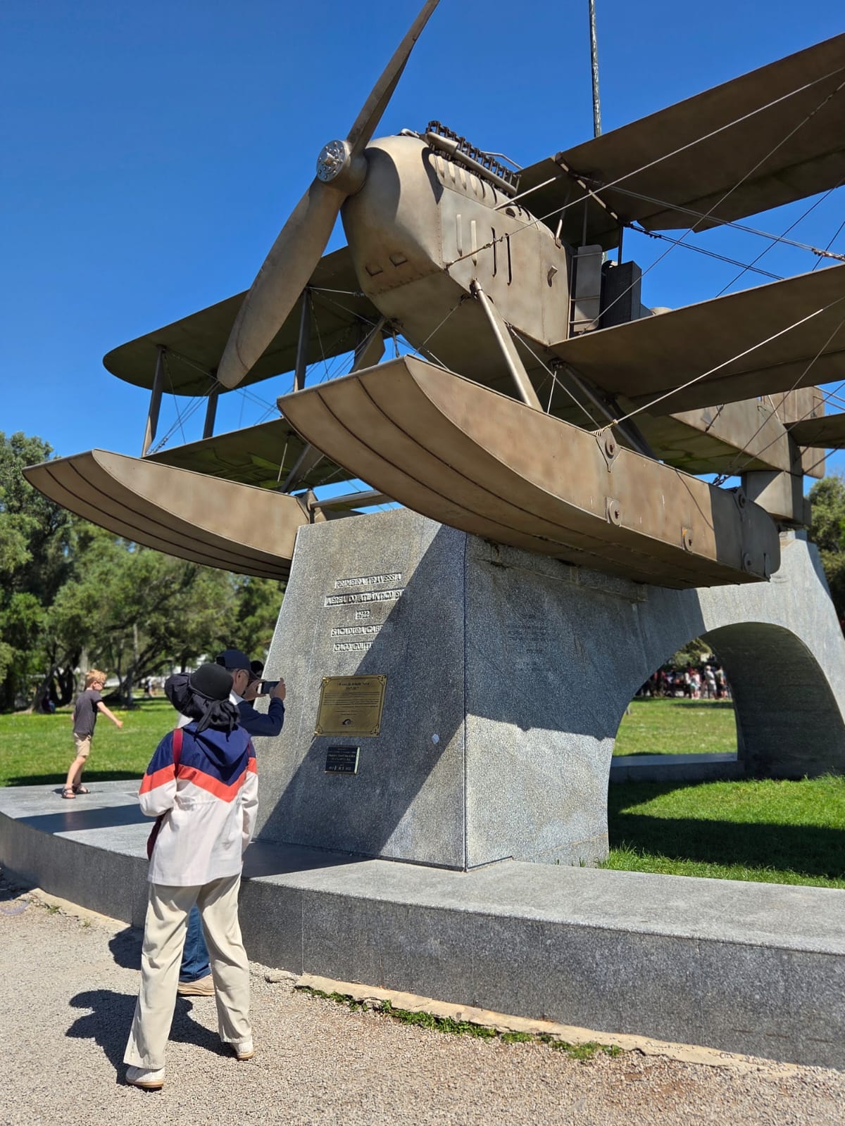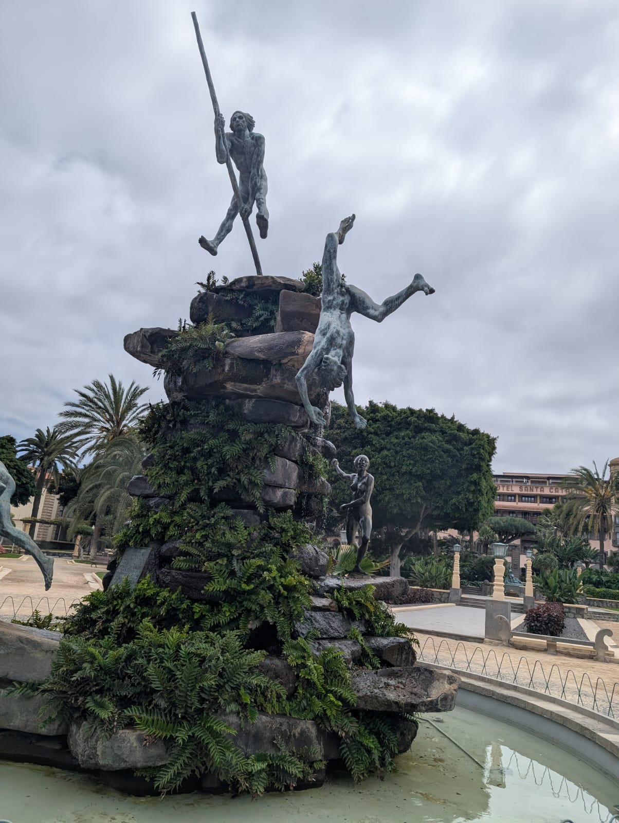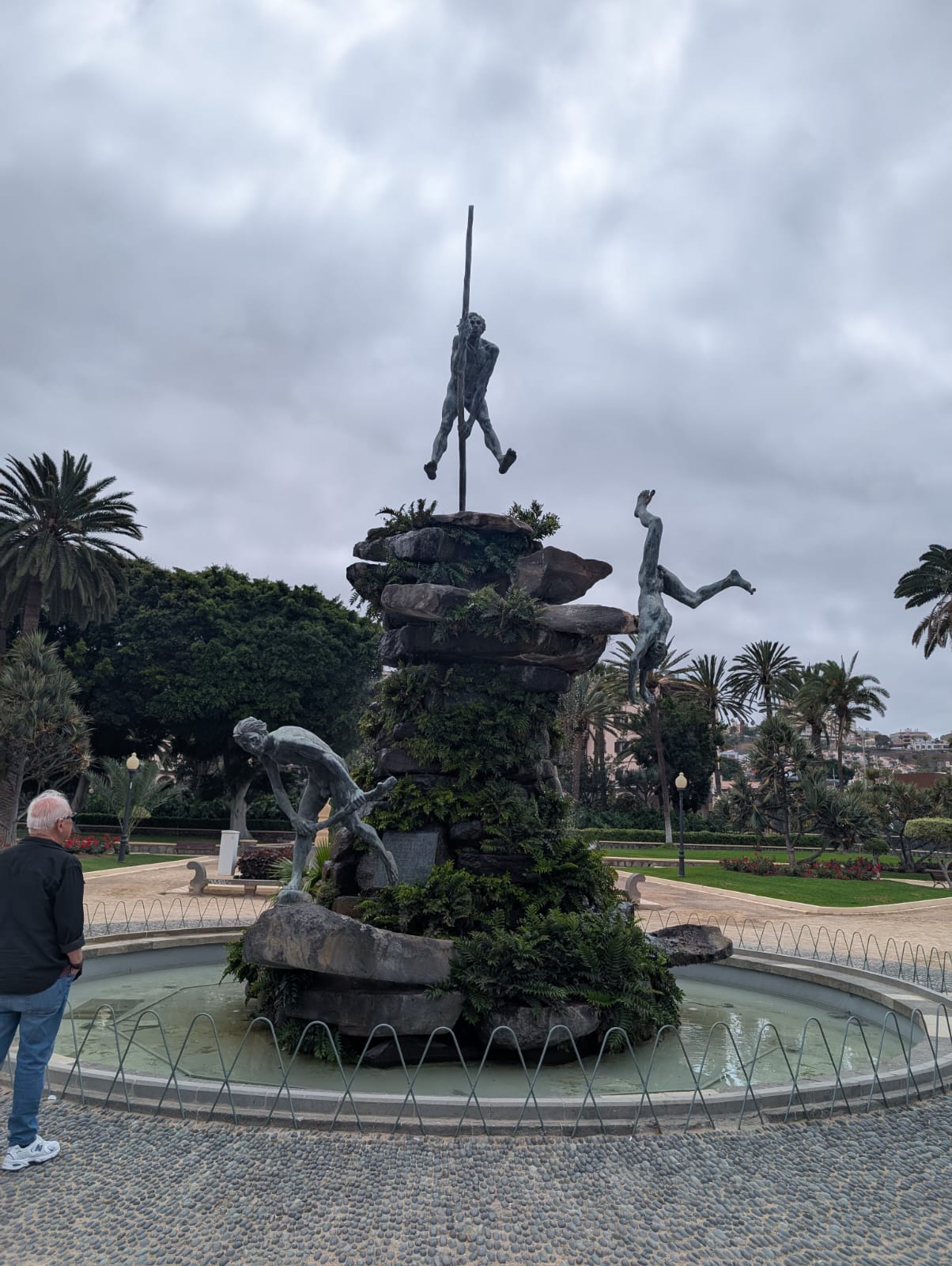 עומדים לפני האנדרטה של הפסל שהחייה את האי לנזרט