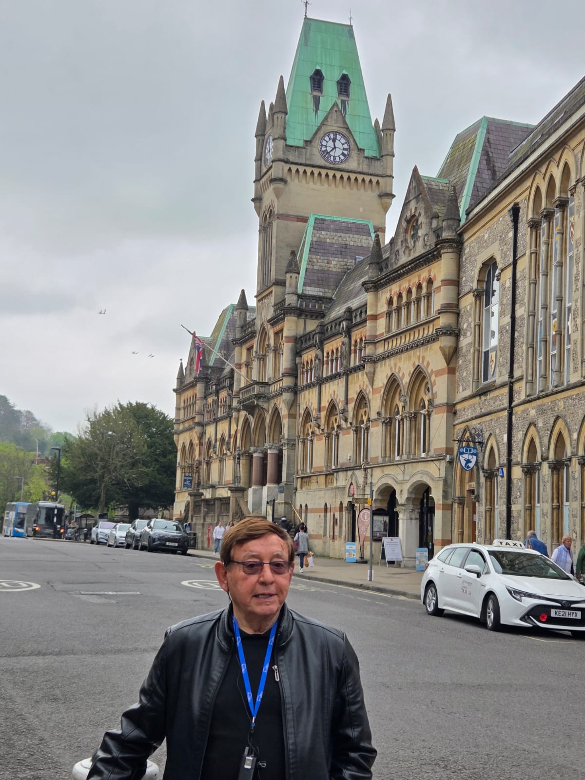 על רקע של בניין העירייה בעיר האנגלית וינצסטר