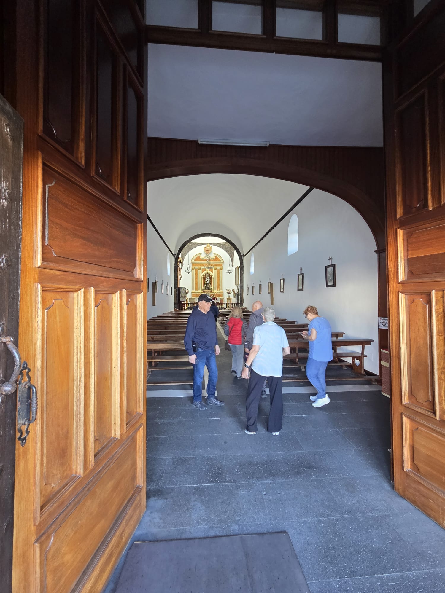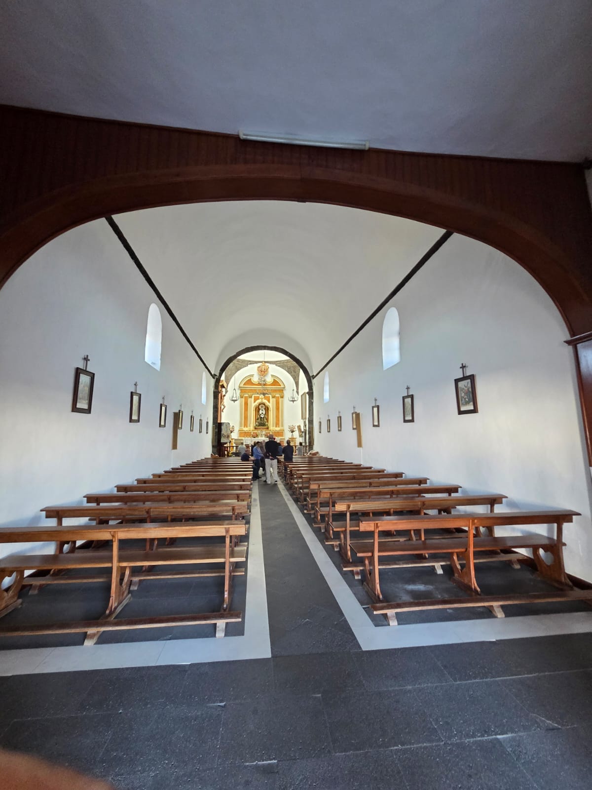 פנים הכנסיה הצנועה שנבנתה לכבוד הבתולה מריה שעצרה יעני את התפשטות הלאבה והצילה את הכפר