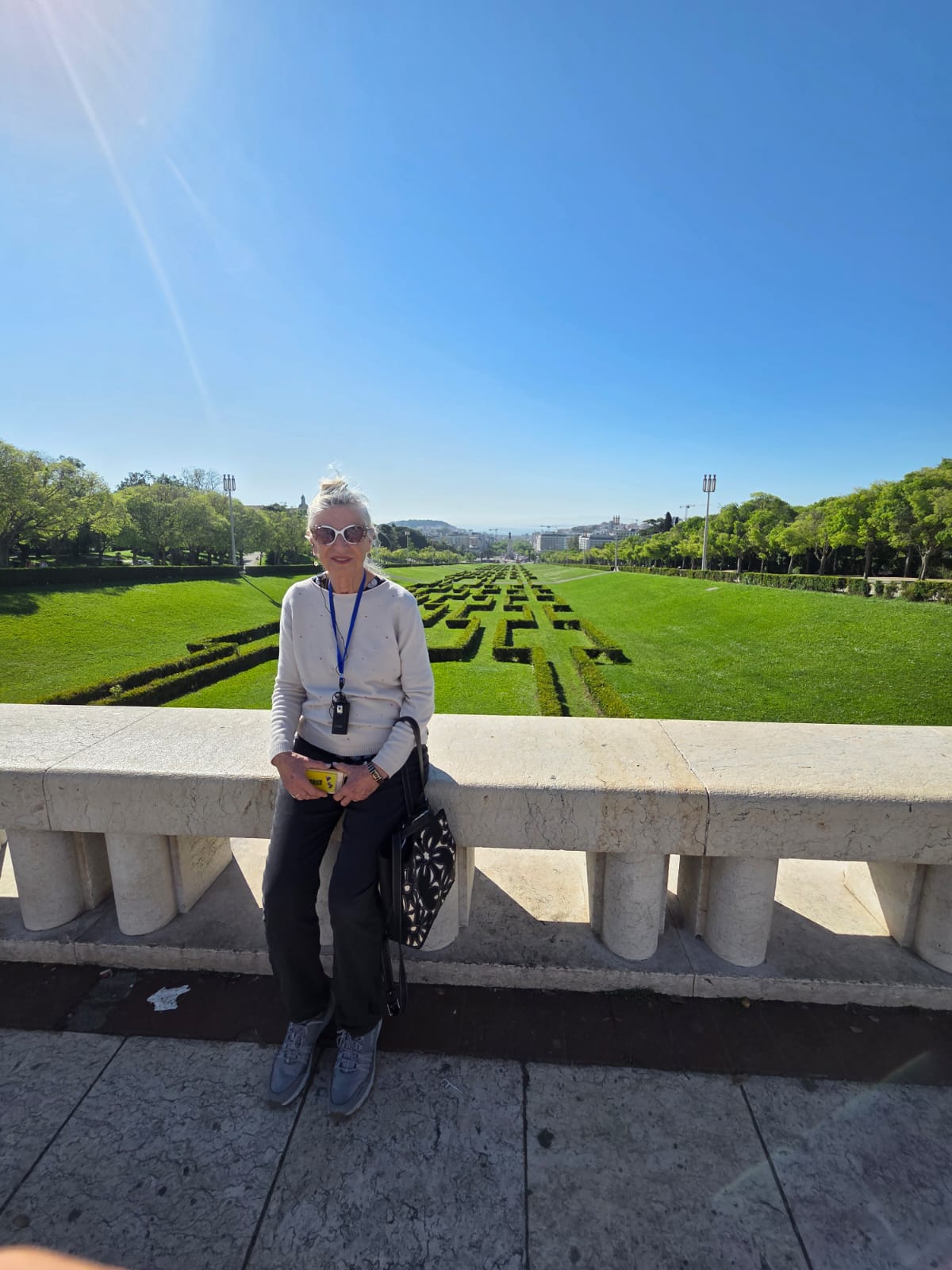 צביה על רקע מרפסת התצפית שנבנ תה לכבוד ביקורו של המלך האנגלי אדוארד השביעי בפורטוגל