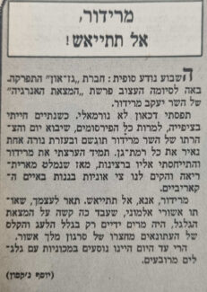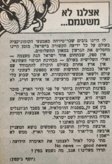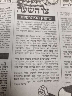 זמן רב ערכתי גרפית לבד את השבועון ומאוחר יותר צורפו לי שתי עוזרות גרפיקאיות .דורית ואביטל לאחר שנים רבות של עבודה גרפית חשתי שאני רוצה לבטא גם מחשבות פוליטיות ואכן יחד עם העיתונאי מאיר דורון יצרנו עמוד סאטירי בעיתון שזכה לחגובות לא מעטות.